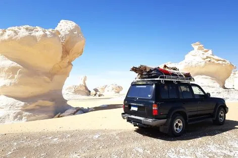 Embark on a 4x4 Jeep safari to explore the volcanic Black Desert and the majestic Valley of Agabat.