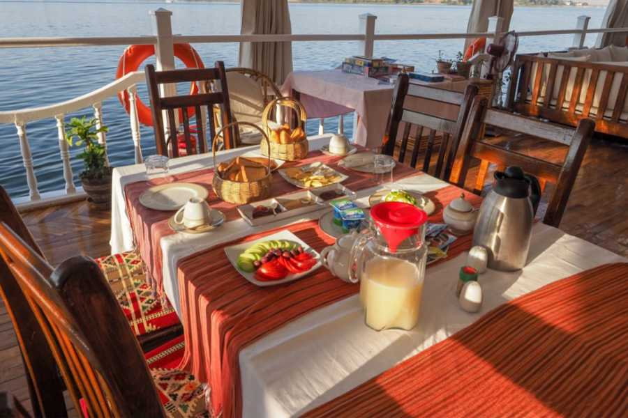 Farewell Breakfast and Disembarkation Following a final gourmet breakfast on the Abundence Dahabiya 4 Days, it is time to say goodbye to the crew. You will disembark the vessel and be transferred in a private vehicle to Luxor. You leave with lasting memories of personalized service, authentic wind-powered sailing, and the intimate cultural immersion that only this boutique experience provides.