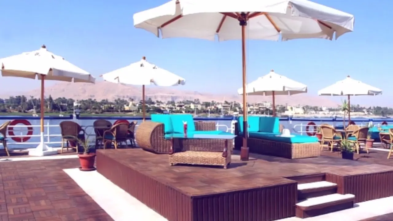 5-Star Onboard Life: Relax with a sun deck pool, spa, and international buffets on your Nile river voyage.