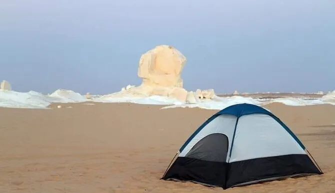 Drive to Bahariya Oasis to begin a desert safari. You will visit the volcanic Black Desert and the hot springs of El Haize before exploring the Valley of Agabat. The day ends in the stunning White Desert National Park, where you will admire unique limestone formations and enjoy dinner under the stars at a Bedouin camp.
