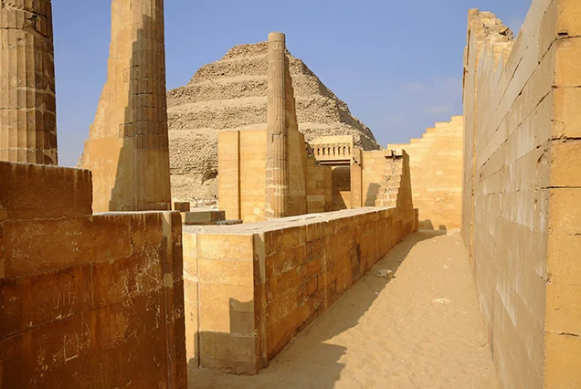 Explore the Step Pyramid of Djoser at Sakkara, the world's earliest stone pyramid.