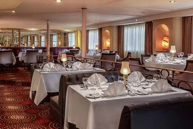 Premium luxury river cruise dining with full-board service and nightly entertainment.